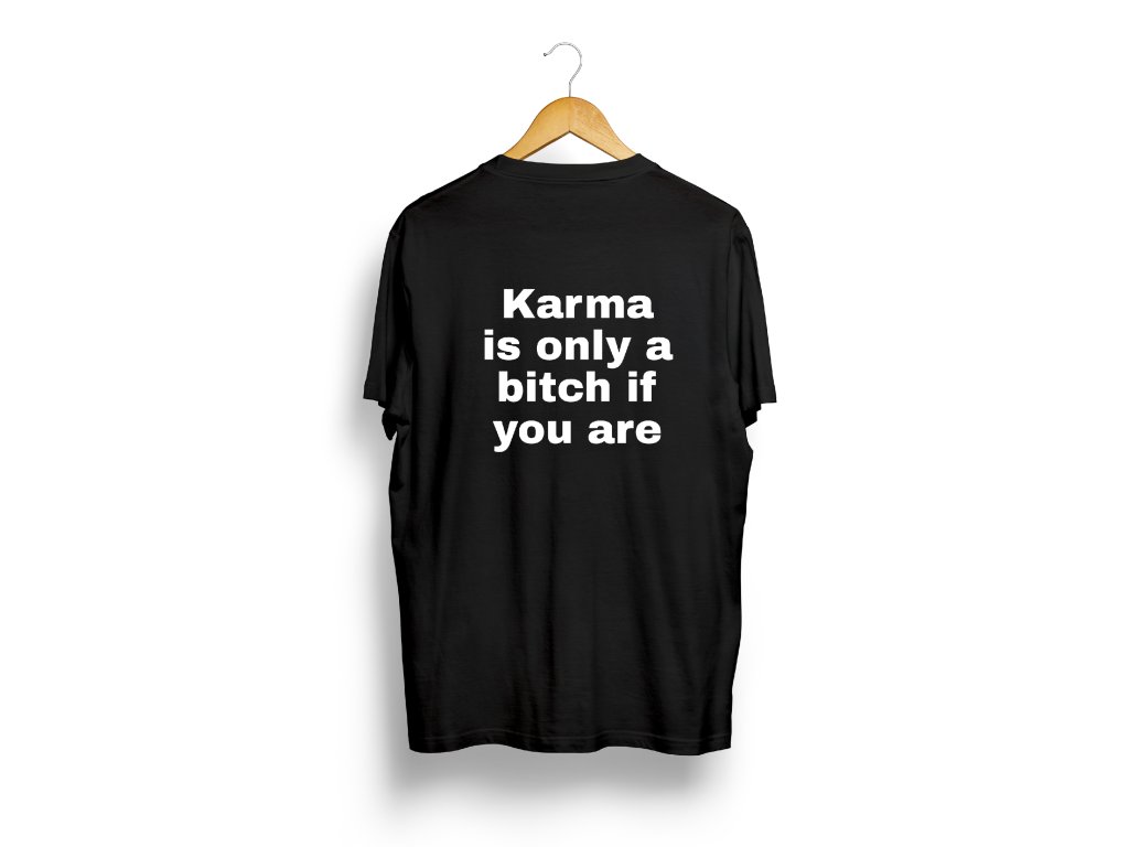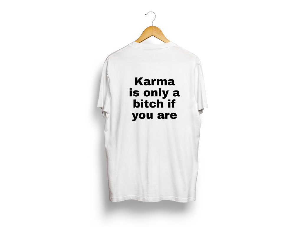 Karma – dostaneš to, co si zasloužíš. Pohodlné tričko s jasným vzkazem na zádech. 100% bavlna, ideální pro ty, co věří na karmu.
